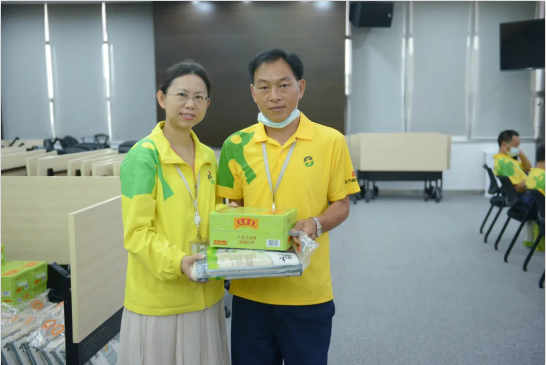 正方控股黨委委員、總經(jīng)理助理、工會聯(lián)合會主席黃少蘭向退伍職工發(fā)放慰問品