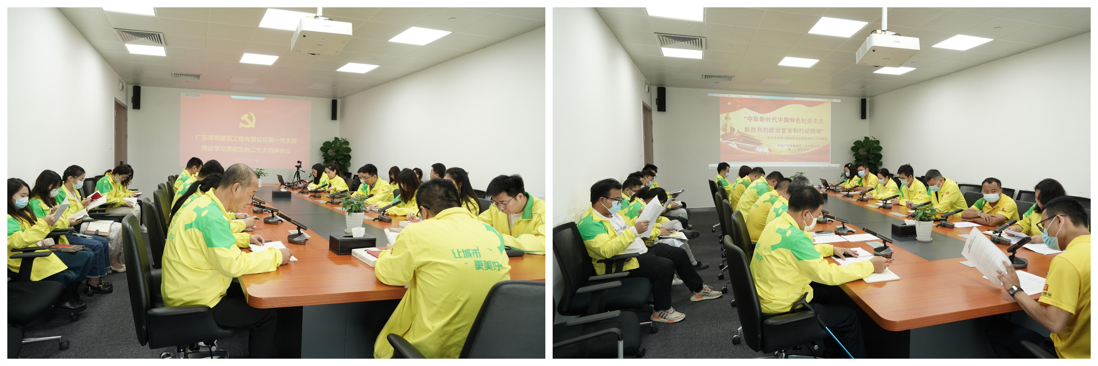 廣東南粵建筑工程有限公司第一、第三黨支部先后召開傳達學習貫徹黨的二十大精神黨員大會。會議要求全體黨員要認真學習黨的二十大報告,把握好習近平新時代中國特色社會主義思想的世界觀和方法論,將貫穿在其中的立場、觀點、方法運用在工作中,武裝頭腦、統(tǒng)一思想,以實干實績推動黨的二十大精神落地落實;要把學習貫徹黨的二十大精神作為當前和今后一個時期的首要政治任務,深刻領悟“兩個確立”的決定性意義,增強“四個意識”、堅定“四個自信”、做到“兩個維護”,時刻保持昂揚的精神狀態(tài)和務實的工作作風。