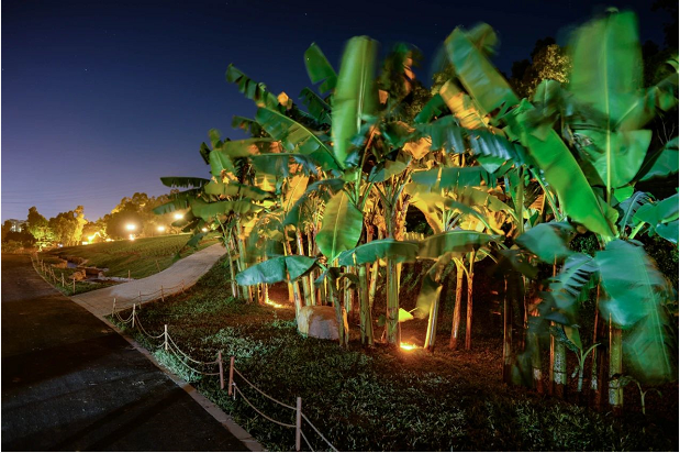 在植物方面,對園內原有樹木進行統(tǒng)籌安排、科學調配,不砍伐一棵樹,也不新購一棵樹,尊重每一棵植物的生命,沿漫步道打造出極具本地特色的綠化景觀效果。
