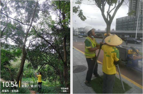 對香山湖公園、海天公園等新栽種的樹木加固及修剪枯枝