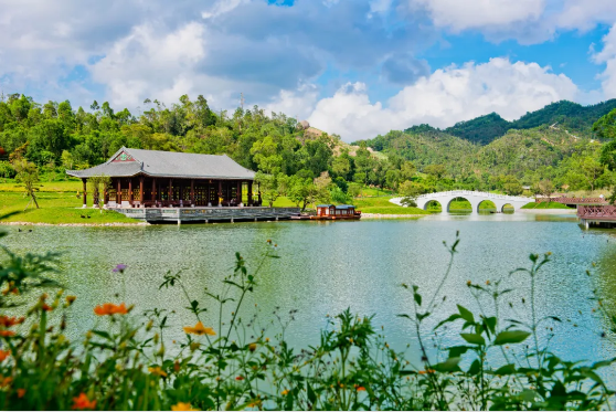 綠水青山環(huán)繞,嶺南建筑古樸典雅,蜿蜒古樸的棧道串連山湖是珠海城區(qū)中最美的古典嶺南園林。