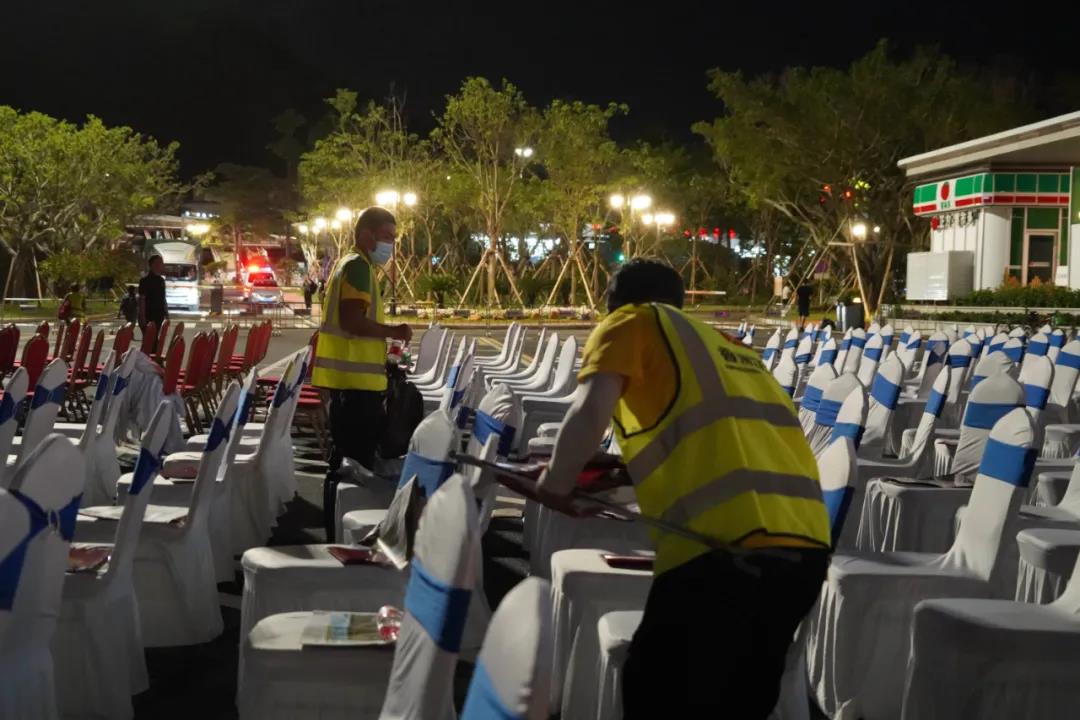 活動結束后,工作人員引導觀眾有序離場,并協(xié)力撤場,從紫薇大道往停車場方面進行全面清理,當晚讓海天公園恢復如初。