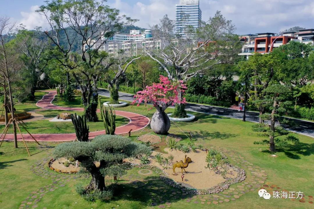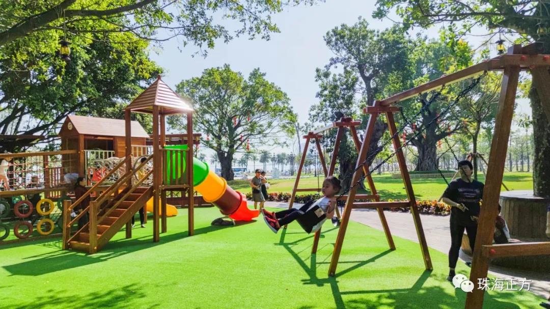 在游園賞景的同時(shí),為增添公園的互動(dòng)性和趣味性。香洲正方還貼心在古樹名木區(qū)增設(shè)了兒童樂園,滿足孩子們的玩樂需求。