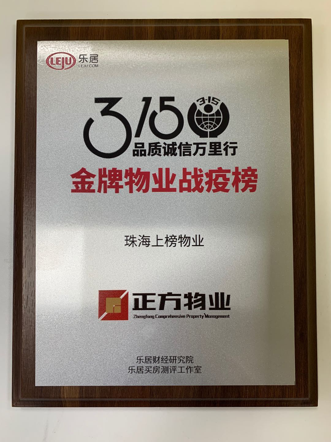 正方物業(yè)榮登金牌物業(yè)戰(zhàn)疫榜