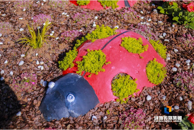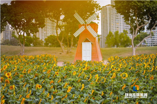 為了增添游人賞花賞景的樂趣,香洲正方還在這里搭建了可愛別致的園林小品,海邊的小木屋配合點綴周邊波斯菊、毛地黃、向日葵,仿佛帶著游人穿越到童話世界。