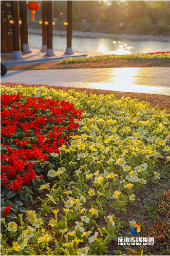 海灣園對出的花帶總面積約1600平方米海風輕拂,花枝搖擺,春光也因此顯得格外美好。