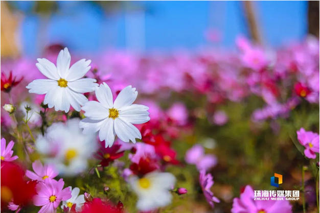 情侶南路日華花園到海灣園附近路段,金魚草、波斯菊、醉蝶花組成的炫彩花海,漸欲迷人眼。