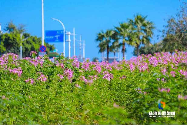 情侶南路全球通大廈對出路段,醉蝶花同樣開得旺盛,遠處的港珠澳大橋,眼前的鮮花,令人忍不住拿出相機,留下最美一刻。
