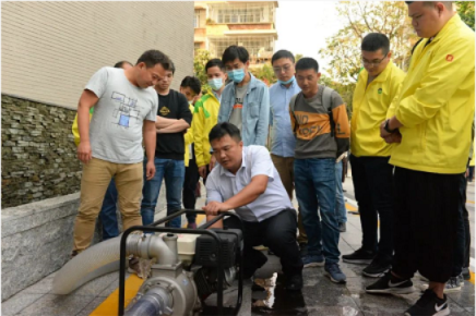 防風(fēng)防汛應(yīng)急知識培訓(xùn)后,全體參訓(xùn)人員在正方·云創(chuàng)園一樓進行應(yīng)急技能實操培訓(xùn),現(xiàn)場實操油鋸鋸木操作、抽水泵抽水等操作。