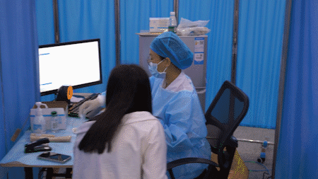 相同的動作重復(fù)近百次,醫(yī)護(hù)人員仍舊保持耐心,安撫情緒、解答疑惑,接種過程一氣呵成。