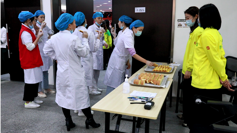在接種現(xiàn)場,還有一群小黃人的身影,格外暖心。她們默默為疫苗注射做好各項統(tǒng)籌準(zhǔn)備,還貼心的為醫(yī)護(hù)工作者準(zhǔn)備小零食,在空閑的時候得以補(bǔ)充體力。