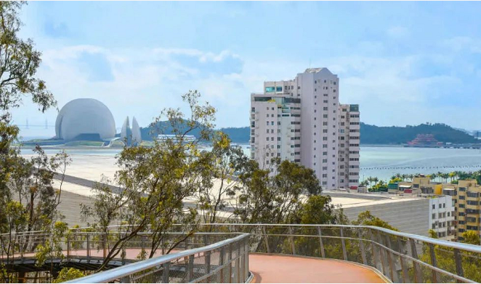觀景平臺(tái)上180°眺望情侶路標(biāo)志海景,傾聽大浪灣和香爐灣,以海浪海風(fēng)訴說(shuō)著的香山故事。珠海博物館、珠海歌劇院、港珠澳大橋,遠(yuǎn)近疊影,恍如被收在畫框之中。