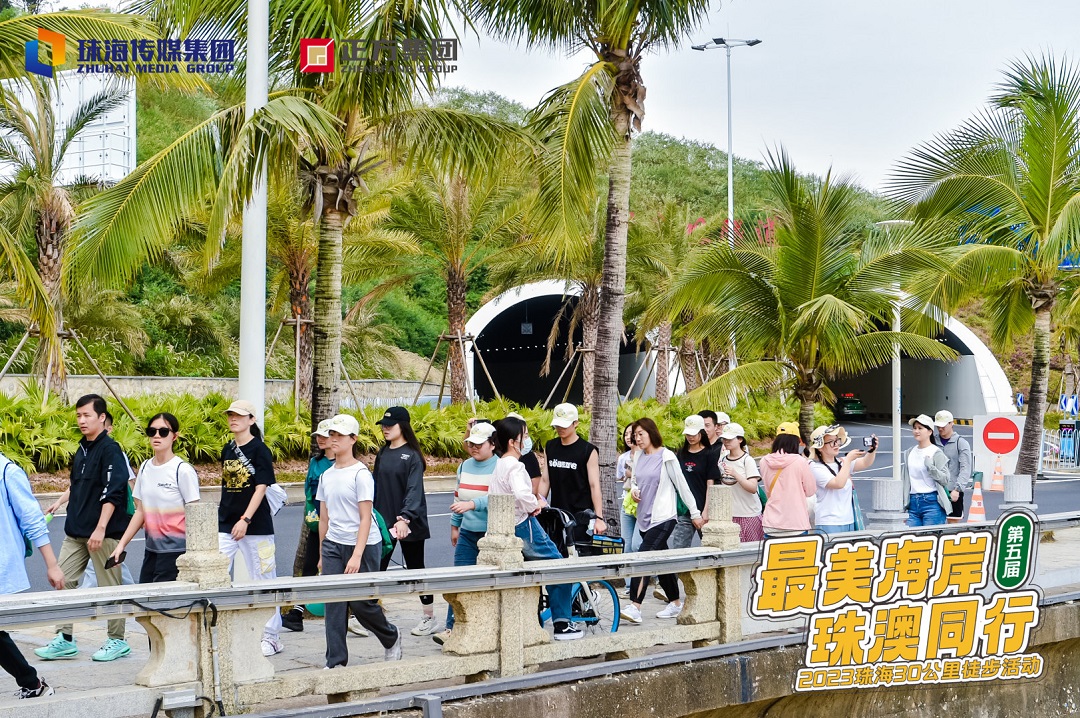 10000余名參與者從位于珠海情侶北路的中山大學(xué)珠海校區(qū)東草坪出發(fā),走過海天驛站、珠海大劇院、優(yōu)和匯·城市陽臺、珠海漁女等“打卡”勝地,走向終點港珠澳大橋。