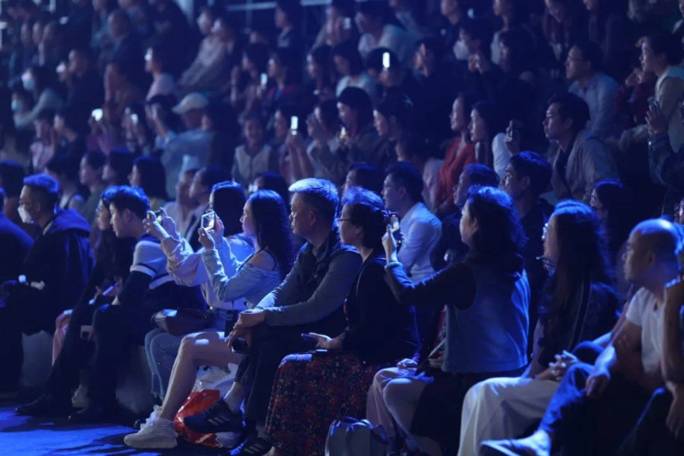 △觀眾現(xiàn)場觀看時尚秀