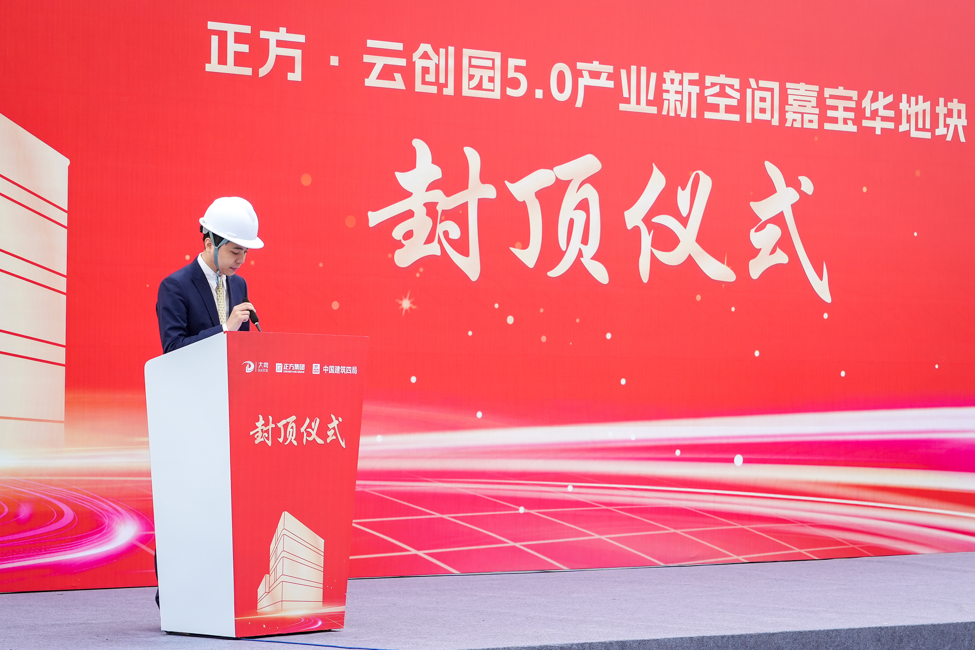 珠海正方集團(tuán)有限公司副總經(jīng)理、珠海正方城市發(fā)展集團(tuán)有限公司董事長李明達(dá)發(fā)表致辭。他表示,正方·云創(chuàng)園5.0產(chǎn)業(yè)新空間嘉寶華地塊是珠海香洲區(qū)的重點(diǎn)產(chǎn)業(yè)項(xiàng)目,受到各級領(lǐng)導(dǎo)和社會各界的關(guān)注。作為香洲區(qū)屬國企,正方集團(tuán)承擔(dān)該項(xiàng)目代建任務(wù),憑借卓越的工匠精神如期達(dá)成主體結(jié)構(gòu)封頂,將該項(xiàng)目打造成國企與民企合作共贏的典范,為區(qū)域經(jīng)濟(jì)注入新活力。