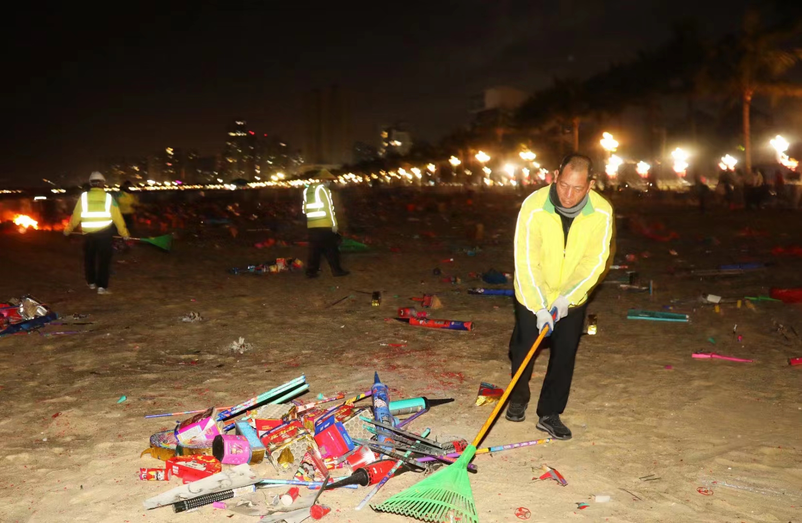 香洲區(qū)開放的可燃放煙花區(qū)域,均在正方集團管養(yǎng)范圍內(nèi)。自春節(jié)假期以來,正方集團累計安排226人次開展煙花燃放后的保潔工作,完成燃放煙花垃圾清理約112.5噸,各區(qū)域接待煙花燃放及觀賞群眾超過15萬人次。為確保煙花燃放后管養(yǎng)區(qū)域第一時間恢復(fù)干凈整潔,24時以后,保潔人員進入現(xiàn)場,打掃市民游客燃放煙花爆竹產(chǎn)生的垃圾,經(jīng)常一干就是5、6個小時,將海灘、公園恢復(fù)原貌。