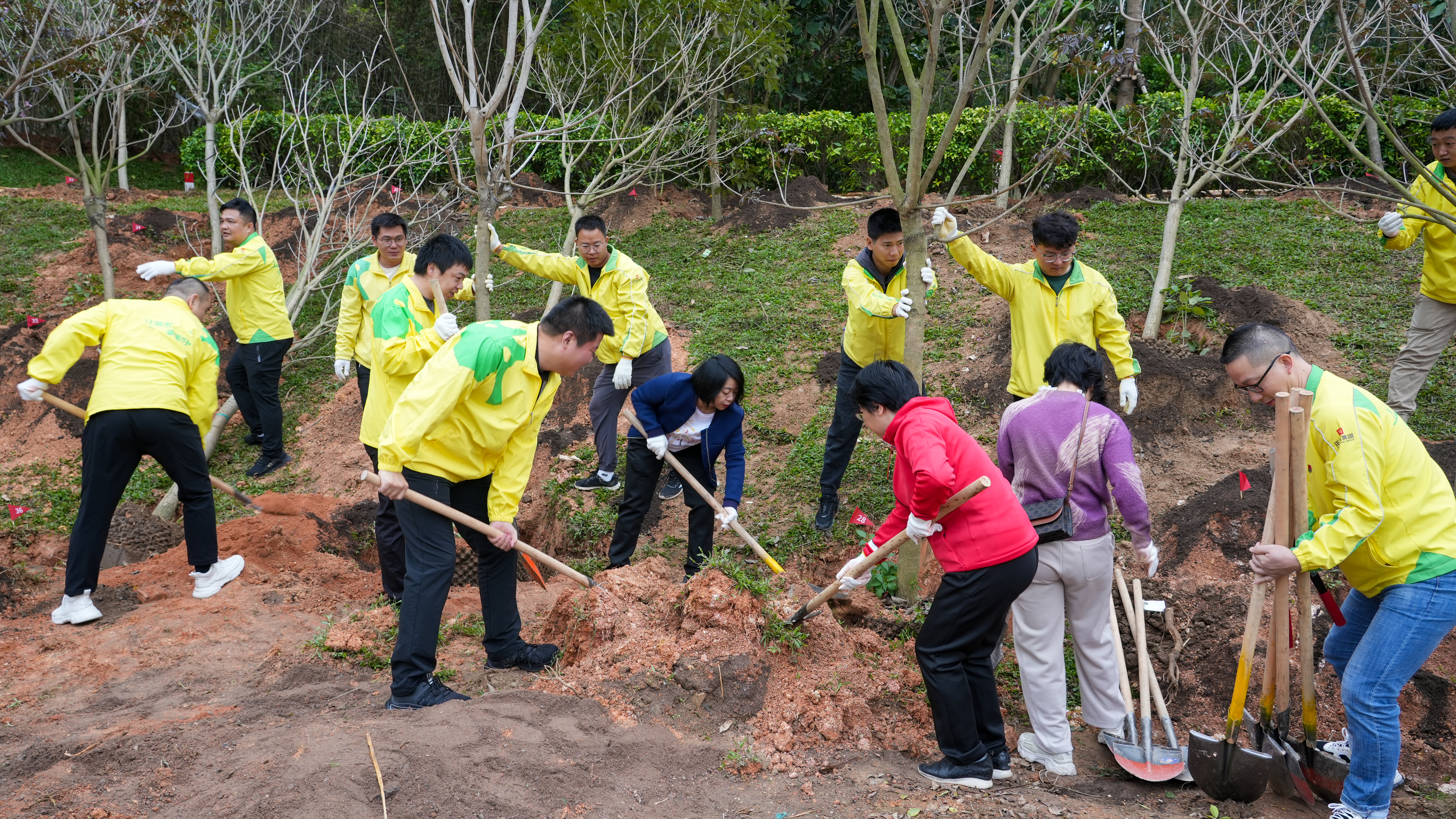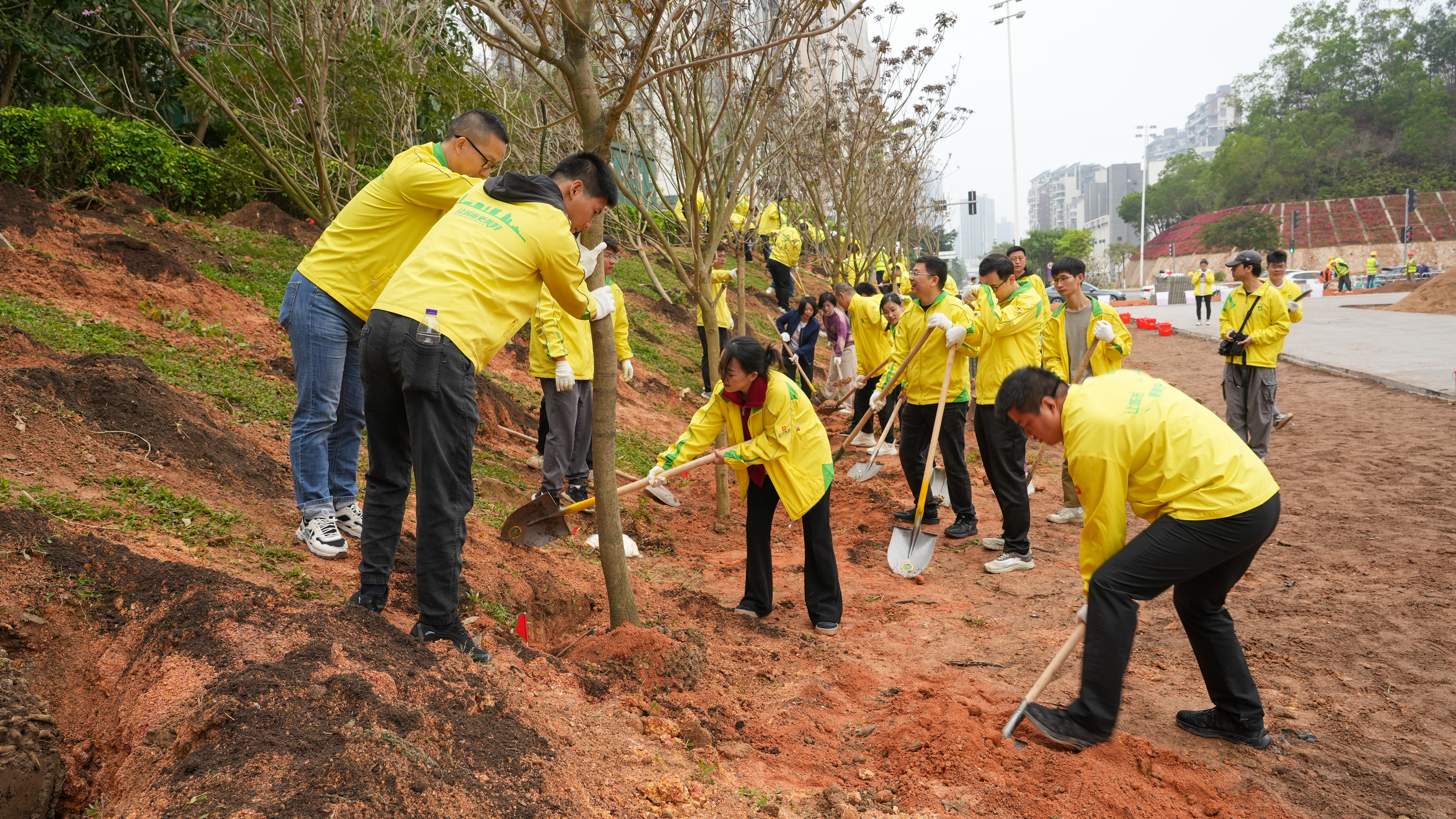 在技術(shù)人員的指導(dǎo)下,參與人員積極迅速投入到植樹(shù)活動(dòng)中,挖坑、扶苗、填土、澆水……150棵紫花風(fēng)鈴木、宮粉紫荊在春風(fēng)中綠意萌動(dòng)、生機(jī)盎然。正方集團(tuán)將點(diǎn)對(duì)點(diǎn)落實(shí)本次種植樹(shù)木的后期管護(hù)工作,保障樹(shù)木的成活率和植樹(shù)成效,守護(hù)香洲盎然生機(jī),為生態(tài)文明建設(shè)再添新綠。