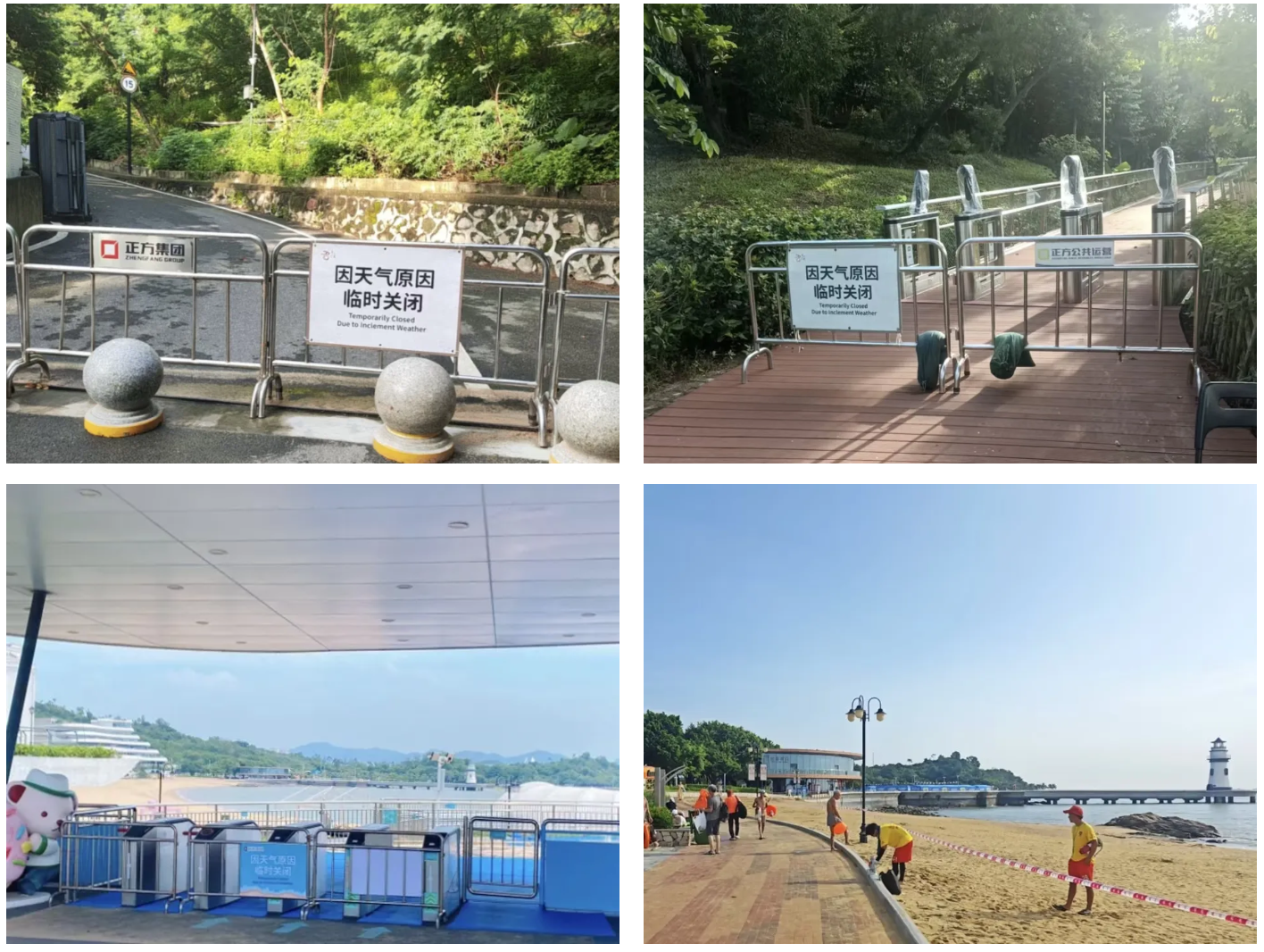 第一時間關閉管養(yǎng)景區(qū)、沙灘等14個管養(yǎng)區(qū)域,提前發(fā)布閉園通知,落實市民游客安全疏散,設置鐵馬、警戒線、風險告示等,開展設施加固、排水疏通、物資轉(zhuǎn)移、樹木加固、排水口清淤等工作,確認自卸車、油鋸、發(fā)電機、抽水泵、沙袋等常用應急物資準備就緒。香山湖2號停車場于7月19日18:00至21日12:00免費開放,為市民車輛提供臺風期間避險停放場所。