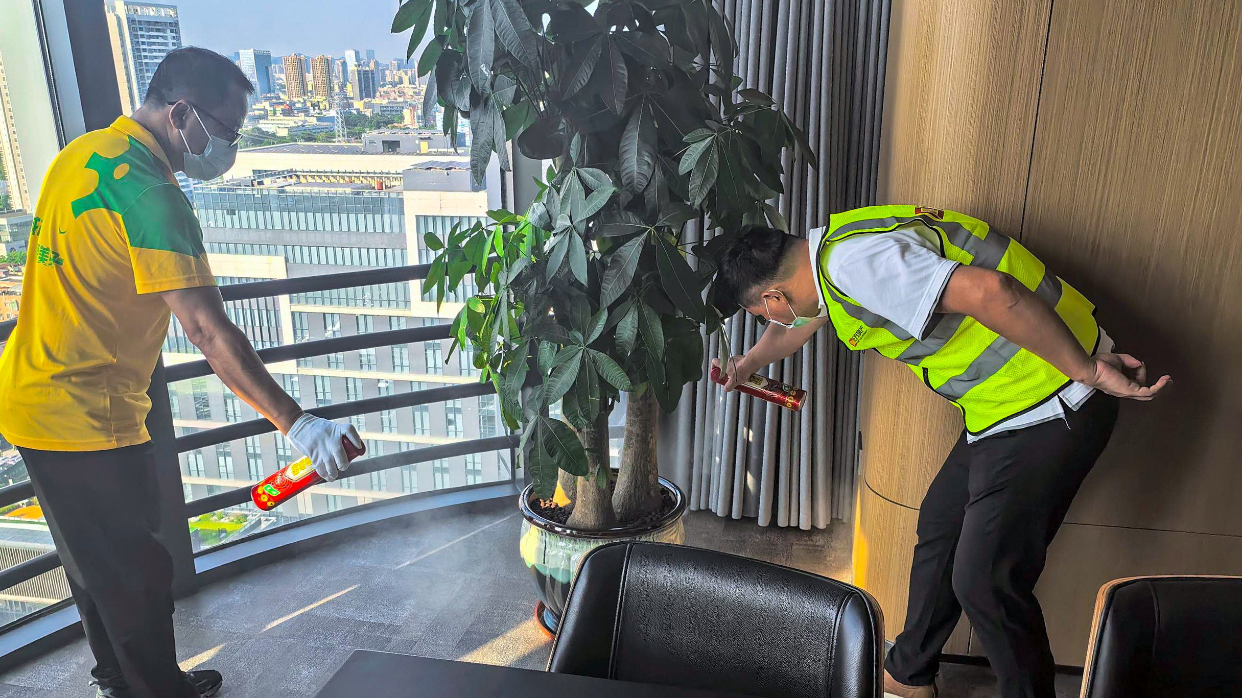 為提高成蚊消殺效率,園區(qū)于伊蚊活動(dòng)高峰期17時(shí)至19時(shí)開展消殺。重點(diǎn)針對(duì)綠化帶、地下車庫(kù)、樓道等蚊蟲棲息地精準(zhǔn)消殺,有效降低成蚊密度。園區(qū)室內(nèi)辦公場(chǎng)所在同一時(shí)段關(guān)閉門窗,采用滅蚊片、殺蟲劑等方式同步滅蚊,確保室內(nèi)外聯(lián)動(dòng),實(shí)現(xiàn)“一盤棋”滅蚊。