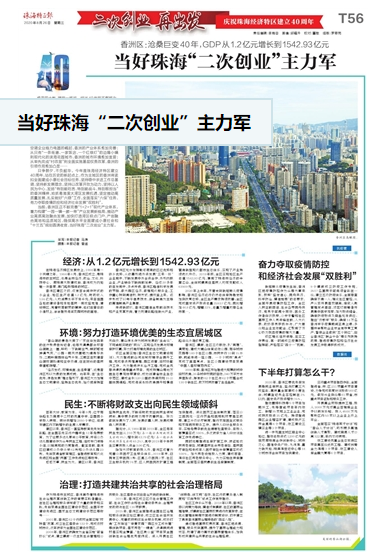40年,香洲大地滄桑巨變。人均GDP從0.1萬美元增長到2.31萬美元,人民生活愈加殷實(shí);從全國第一家“三來一補(bǔ)”企業(yè)香洲毛紡廠的成立,到全球最大家用空調(diào)企業(yè)格力電器的崛起,香洲的產(chǎn)業(yè)體系愈加完善;從只有“一條街道、一家飯店、一個紅綠燈”的邊陲小鎮(zhèn)到現(xiàn)代化的濱?;▓@城市,香洲的城市環(huán)境愈加宜居;從率先完成“村改居”到全面實(shí)施基層權(quán)責(zé)改革,香洲的引領(lǐng)作用愈加凸顯……