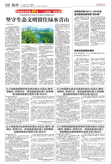 站在經(jīng)濟(jì)特區(qū)建立40周年的新起點(diǎn)上,珠海仍將堅(jiān)決貫徹綠色發(fā)展理念,在美麗灣區(qū)建設(shè)中走在前列。踐行綠水青山就是金山銀山的理念,加快形成綠色發(fā)展方式和綠色生活方式,繼續(xù)擦亮生態(tài)宜居品牌。鞏固提升生態(tài)文明優(yōu)勢,在高質(zhì)量發(fā)展中實(shí)現(xiàn)大跨越大提升,以“小支點(diǎn)”撬動(dòng)區(qū)域經(jīng)濟(jì)發(fā)展的“大杠桿”。