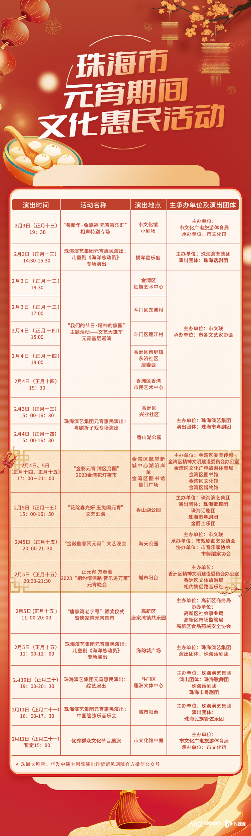 年到元宵燈火燃,文化活動(dòng)好戲連臺(tái)。在元宵節(jié)期間,珠海演藝集團(tuán)還將帶來(lái)一系列元宵惠民演出活動(dòng)。