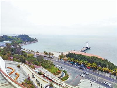 從港灣大道到情侶路,沿線多個停車場也為游客流連駐足各類“網(wǎng)紅打卡地”提供了方便。例如港灣大道沿線的紅花山黨建公園。由登山步道一路前行,不僅能看到隱藏在樹木繁盛山谷中的珠海版“小九寨溝”,還能在視頻平臺刷屏的大船造型步道上俯瞰整個唐家灣海灘,讓人瞬間心曠神怡。相似的還有海天驛站,將車停在驛站配套停車場或海天公園停車場,即可感受伸入海中的景觀棧道。在陸海相融的棧道上舉起相機(jī),城市地標(biāo)美景悉數(shù)被相機(jī)取景框收納。