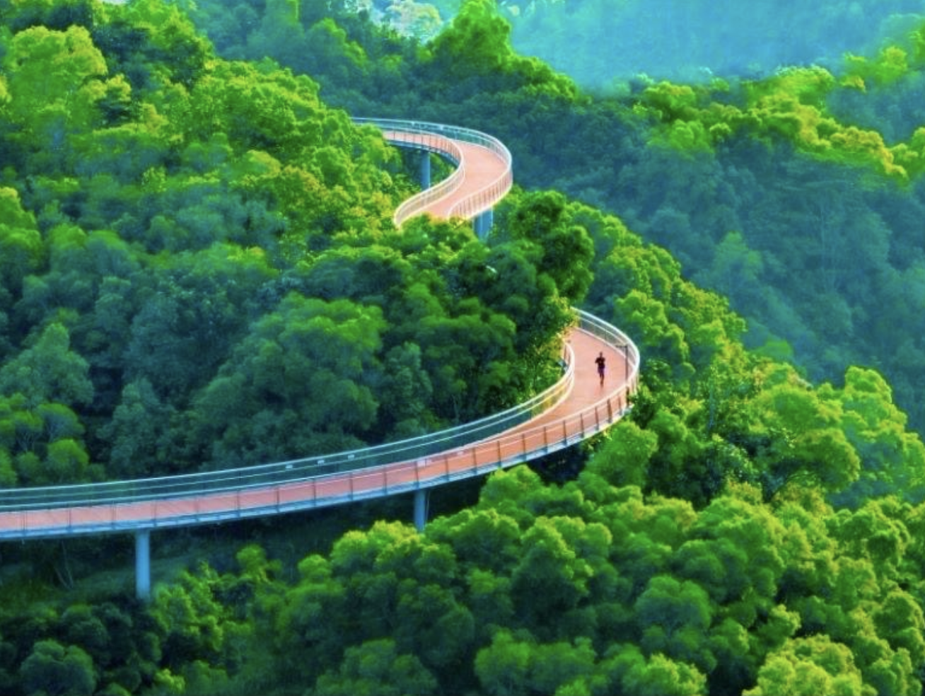 1.香山云道:山巒蒼翠、水光瀲滟。作為香山云道四大主題線路中的“觀水段”,香山云道香山湖——大鏡山西入口段全境位于山林之中,途經(jīng)大鏡山水庫,是一條依托自然山水而打造綠色健康空中步道。漫步云道,感受山林間清新的空氣,云霧在山間流淌。綠意青蔥,鳥鳴悠悠。
