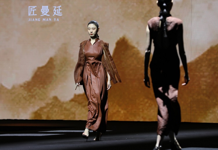 HUANG GANG品牌設(shè)計(jì)師黃剛堅(jiān)持“非遺+科技+時(shí)尚”的設(shè)計(jì)理念,以可持續(xù)時(shí)尚發(fā)展為核心進(jìn)行設(shè)計(jì)創(chuàng)造,“這次帶來的作品不僅運(yùn)用了全球領(lǐng)先的3D針織技術(shù),還選用了獲GOTS認(rèn)證的有機(jī)棉、麻、絲、生態(tài)再生羊絨,以及獲GRS認(rèn)證的再生聚醋纖維等面料和紗線?!蓖ㄟ^與中國傳統(tǒng)面料香云紗、壯錦等材料相結(jié)合進(jìn)行設(shè)計(jì)創(chuàng)作,他也不斷傳達(dá)出自身對(duì)非遺文化的由衷熱愛。