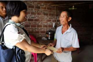 扶貧小組成員為各自的幫扶對(duì)象送上慰問(wèn)品與慰問(wèn)金