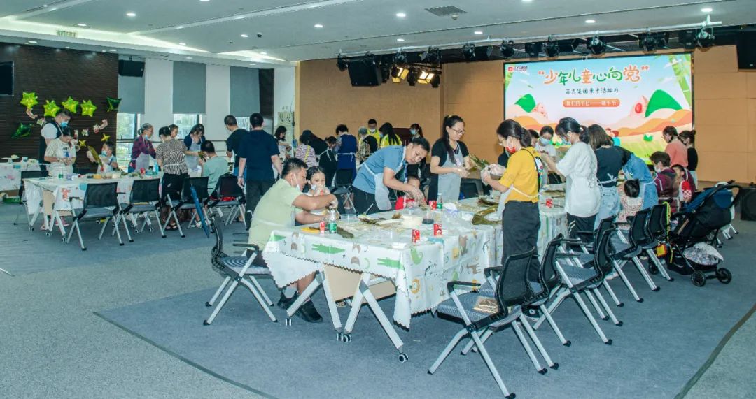 在制作粽子前,大家通過生動(dòng)有趣的視頻了解了端午節(jié)的由來和習(xí)俗,并熱情地參與有獎(jiǎng)問答環(huán)節(jié)。小朋友們爭(zhēng)先恐后地舉手、搶答現(xiàn)場(chǎng)主持人提出的問題,現(xiàn)場(chǎng)氣氛十分活躍有趣。