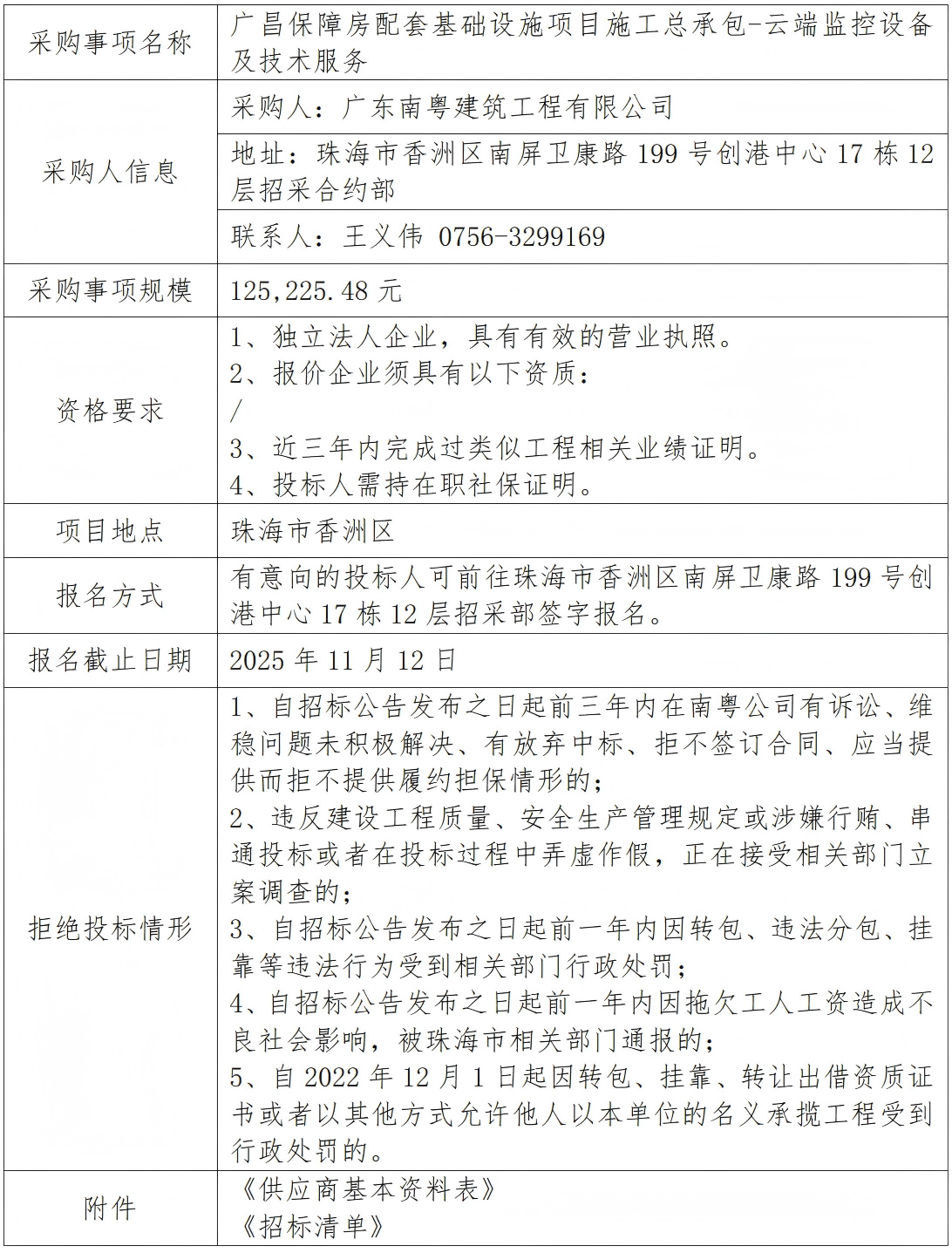廣昌保障房配套基礎設施項目施工總承包-云端監(jiān)控設備及技術服務 專欄:工程招標 發(fā)布日期: 2025-11-10 作者:招采管理中心 附件:供應商基本資料表 附件:廣昌保障房配套基礎設施項目施工總承包-云端監(jiān)控設備及技術服務招標空白清單 返回列表 上一篇:洪灣舊村更新項目周邊環(huán)山路等市政道路工程-波形護欄材料采購 下一篇:廣昌保障房配套基礎設施項目施工總承包-實名制系統(tǒng)考勤機升級、環(huán)境監(jiān)測系統(tǒng)、視頻監(jiān)控