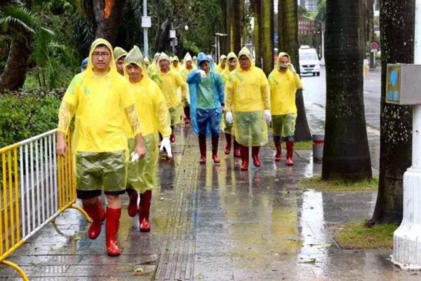 臺(tái)風(fēng)無(wú)情虐過(guò),城市客廳、鳳凰灣、香爐灣三大沙灘以及社區(qū)公園均受損嚴(yán)重,300余名“小黃人”又迅速集合,第一時(shí)間重點(diǎn)針對(duì)受創(chuàng)嚴(yán)重的情侶路沿線及城市客廳作為搶險(xiǎn)清理重點(diǎn),迅速開(kāi)始了搶險(xiǎn)工作?!靶↑S人”們?cè)陲L(fēng)雨中積極的行動(dòng)起來(lái),在這場(chǎng)人與自然的“戰(zhàn)爭(zhēng)”中,“小黃人”們化身為英勇的戰(zhàn)士,再大的困難險(xiǎn)阻都不屈服!