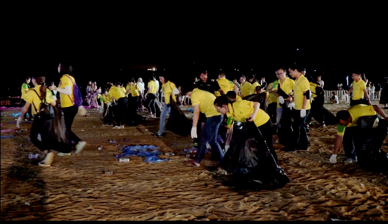在音符停止跳躍之前,”小黃人”早已在舞臺前集結待命,在人群散去之后馬上進行拉網(wǎng)式沙灘清潔工作。游客們離場,帶走的只有美好的回憶,留下的只有腳印。