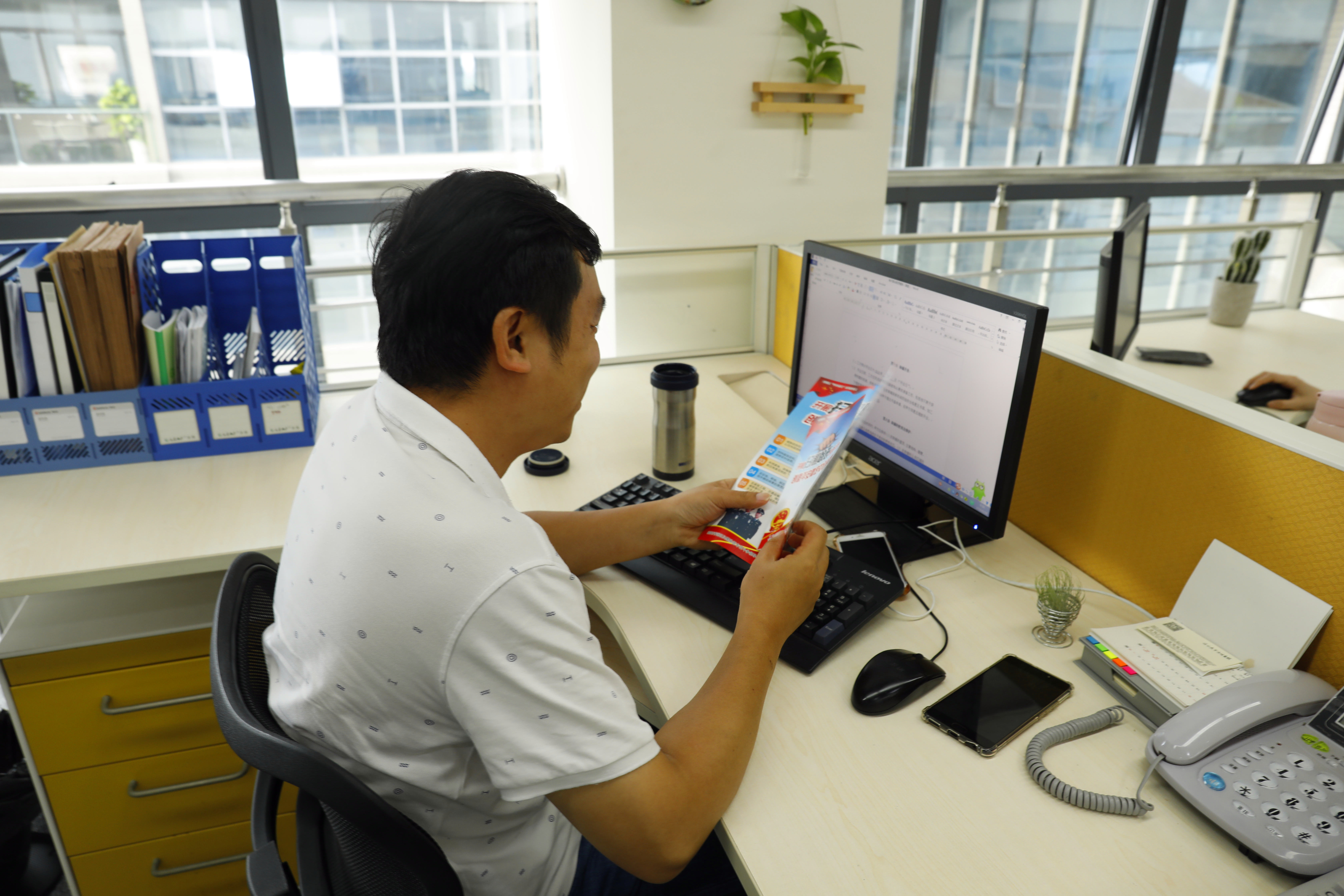 正方控股職工在認真閱讀掃黑除惡宣傳資料