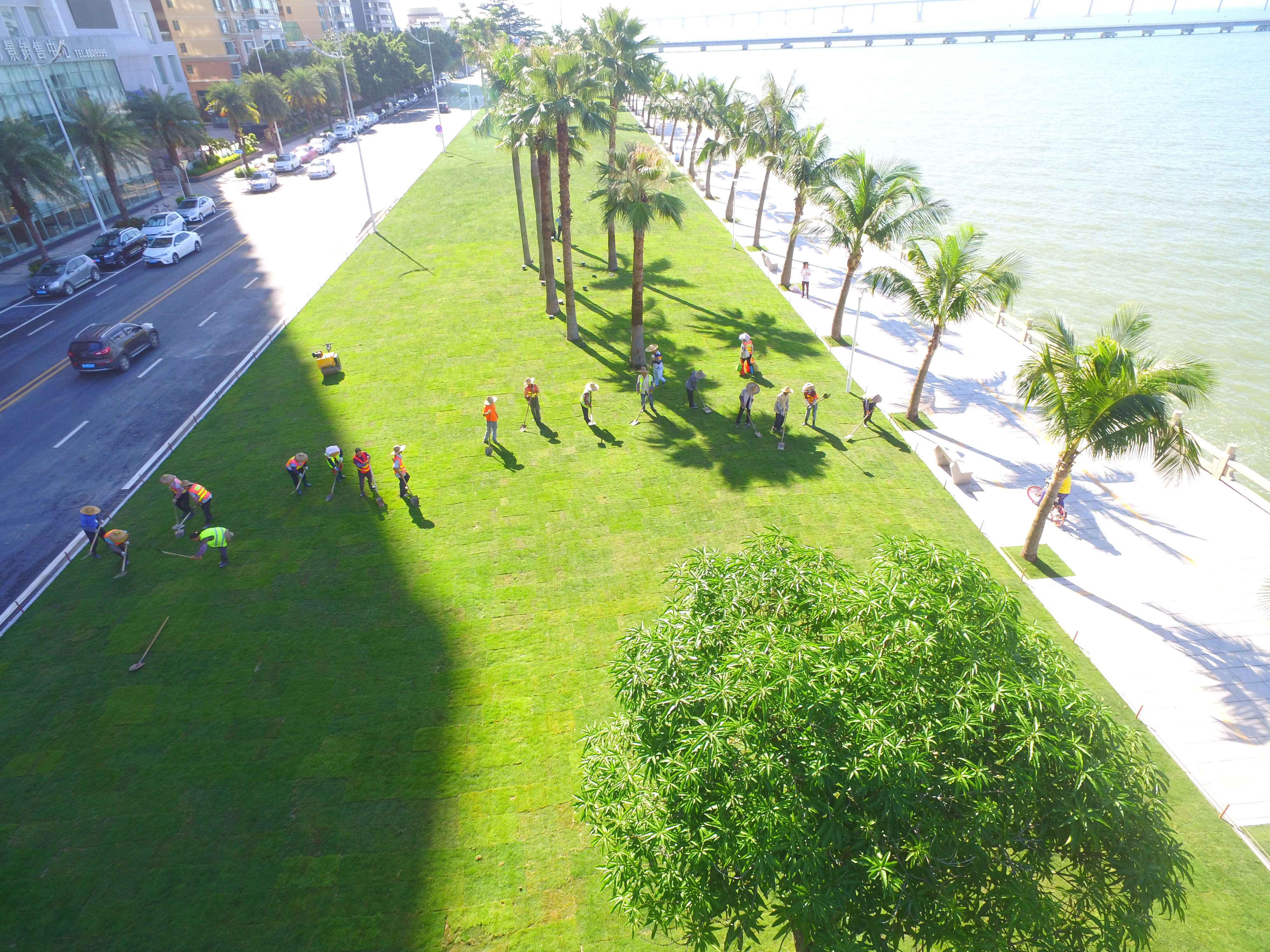 在綠植方面:正方控股在本次提升工程中選擇鋪貼優(yōu)質(zhì)的臺灣草。該草形成的草坪低矮平整,莖葉纖細(xì)美觀,又具一定的彈性,耐踐踏性強,加上侵占力極強,易形成草皮;同時,還移植了熱帶風(fēng)光樹“銀海棗”,與“紅果冬青”等,進(jìn)一步提升了該路段的觀賞性,且抗風(fēng)能力強,對有害氣體有一定的抗性。