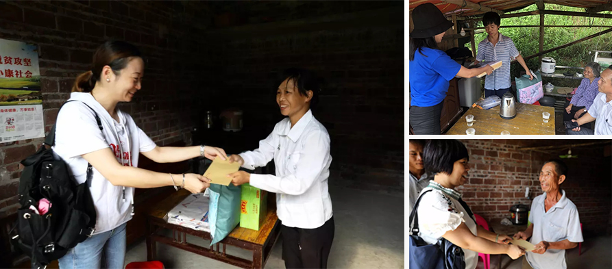 △扶貧小組成員為各自的幫扶對象送上慰問品與慰問金
