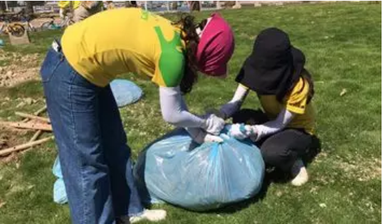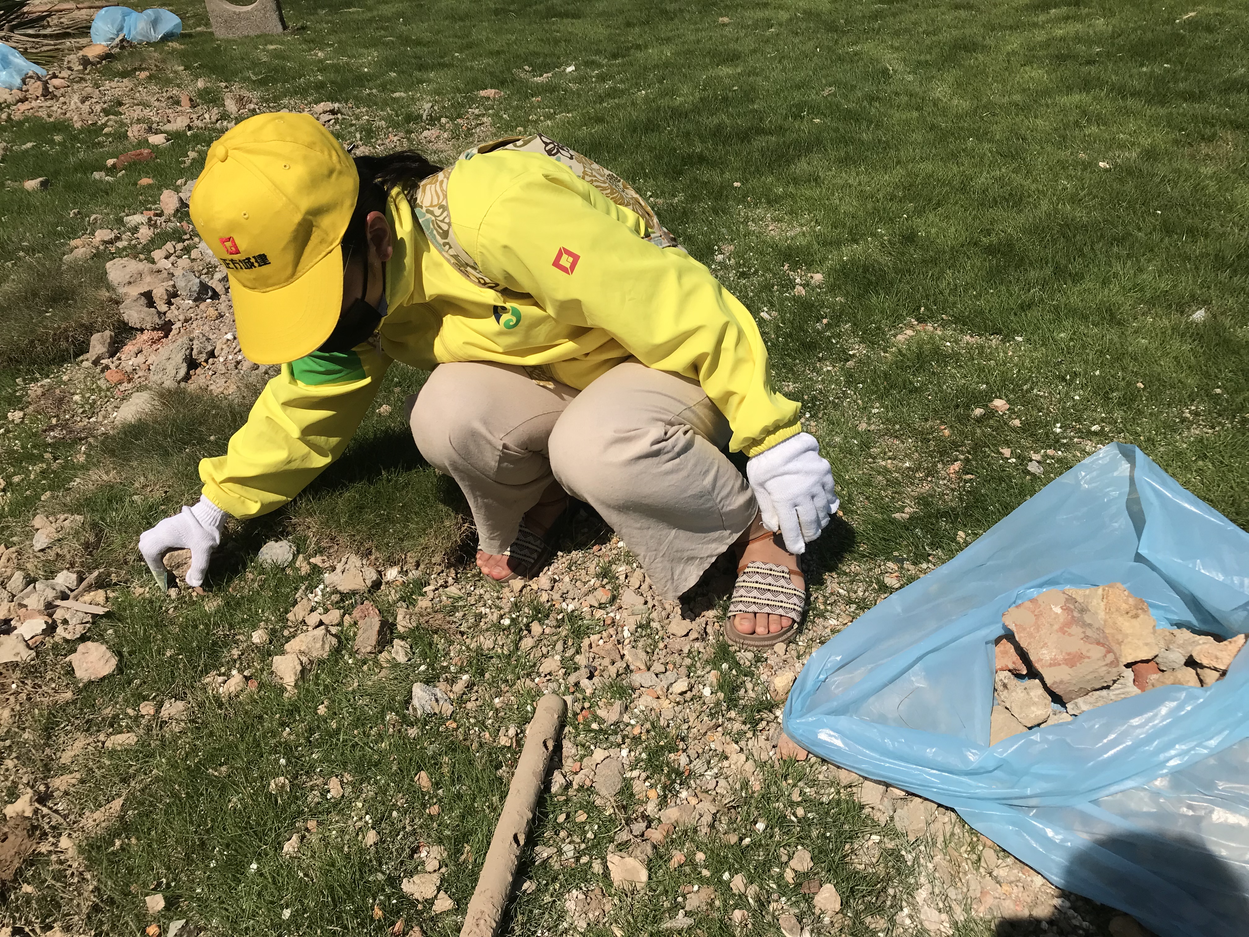 △一手一手將垃圾拾起