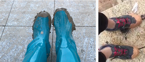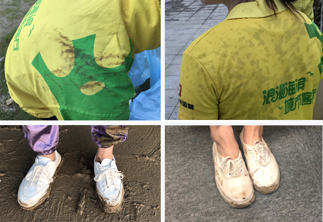 △衣服鞋子已滿是泥垢
