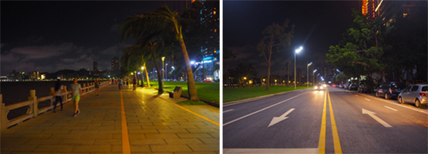 △夜幕降臨,情侶路又恢復(fù)了昔日的寧靜 飯后出現(xiàn)了散步的人群