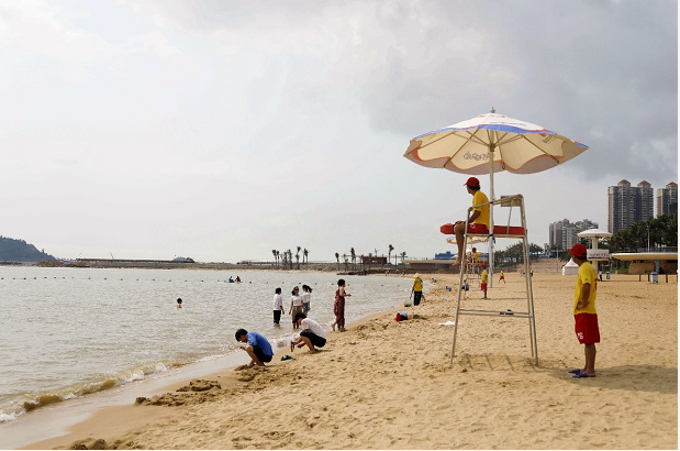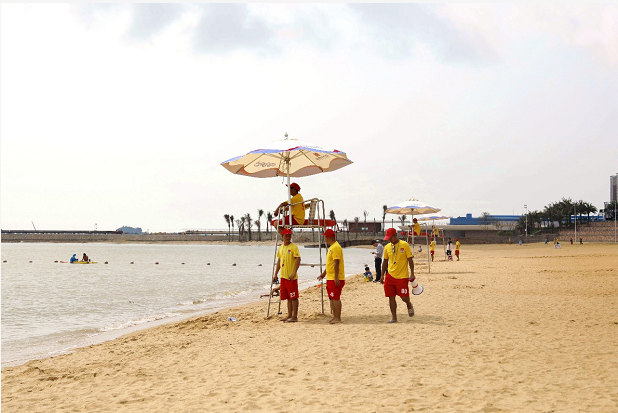 在“城市客廳”按照水域的安全條件,劃分出“安全游泳區(qū)”,并增設(shè)了安全繩。市民、游客親水區(qū)域,設(shè)立了多處“安全提示”、“入海安全須知”等提醒標(biāo)識(shí)。濱海泳區(qū)還配有18名持證上崗的救生員,24小時(shí)候守護(hù)市民、游客安全。