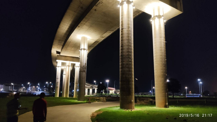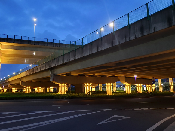 據(jù)珠海市香洲正方控股有限公司總經(jīng)理助理張有文介紹,立交橋燈光亮化工程包括功能性景觀照明和裝飾性景觀照明兩部分;除人行通道區(qū)域外,其他區(qū)域都屬于景觀照明的范圍。香洲正方通過(guò)在橋墩側(cè)面設(shè)置暖色調(diào)壁燈,將橋身以及周?chē)h(huán)境點(diǎn)亮,不僅實(shí)現(xiàn)了沿線夜景的可觀性,點(diǎn)綴了珠海夜景,也方便了車(chē)輛駕以及行人通行,橋底的安全性也大為提高。