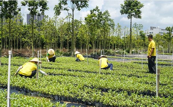 6月20日上午,正方物業(yè)公司梅華苗圃,綠化組正在為時(shí)花除草