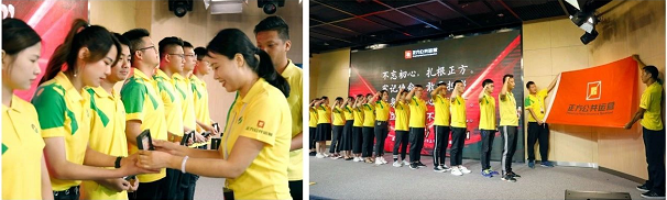 一張張青春洋溢的面龐,代表著正方未來的發(fā)展力量,從這里逐夢起航。各公司還為今年新加入的管培生“小黃人”舉行了歡迎儀式。香洲正方公共運營板塊的管培生收到了一份特殊的紀念品——《薪火相傳》郵票。該郵票是為紀念中國工農(nóng)紅軍長征勝利八十周年而發(fā)行,寓意著將長征中艱苦奮斗的精神薪火相傳。
