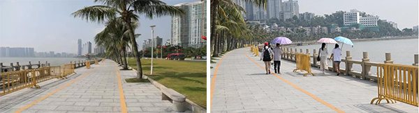 此外,他們還提前來到情侶南路,對沿線的海邊護欄、燈柱、花灑水噴頭、垃圾桶、臨時工地、電纜、各類管道等市政設施一寸寸地排查整改;對全段所有的電箱、箱變、路燈進行漏電檢查;對所有下沉井蓋進行檢查,遇到問題隱患立即更換;同時,對沿線綠植進行美化修剪、草皮補植、時花補種,提高沿線美觀性;檢查商品銷售點食品是否安全,轄區(qū)安全警示標識是否全面、充足等。