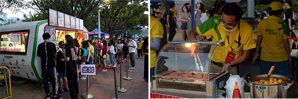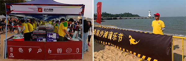 音樂節(jié)現(xiàn)場貼心設(shè)有16個(gè)售賣帳篷,提供飲料、熱食、冰品、沙灘用品等50余種商品?!靶↑S人”全力以赴做好食品安全審核工作,讓夜晚不僅有熱辣的音樂,還有安全可口的美食。