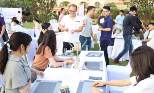 隨后,現(xiàn)場嘉賓在主持人的引導(dǎo)下開展了有趣的“暗號對對碰”破冰環(huán)節(jié),大家通過手中的“暗號”尋找自己的組員,游走在各桌之間,在一來一回的暗號對答中,不知道是否有人已經(jīng)芳心暗許?