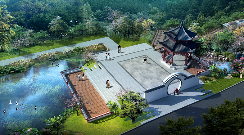 香洲正方利用地勢(shì)依水而建環(huán)湖碧水親水棧道,打造古色古香的水軒、跌水、景亭等。以“最小干預(yù)最大促進(jìn)”原則,將對(duì)生態(tài)的干擾降到最低,并最大限度維護(hù)場(chǎng)地原有生態(tài)格局,促進(jìn)資源的高效利用與循環(huán)再生。