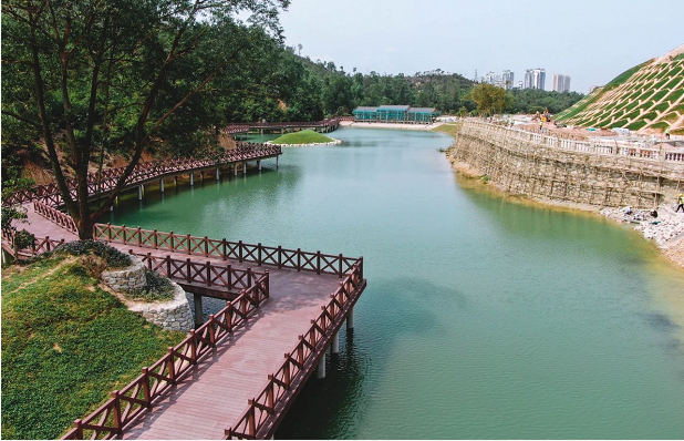 香山湖公園二期的設(shè)計(jì)秉承“以人為本”的理念,遵循“崇尚自然,師法自然”的原則,在充分考慮原貌自然環(huán)境條件的基礎(chǔ)上,植入嶺南園林傳統(tǒng)經(jīng)典造景,把人工美和自然美有機(jī)地結(jié)合,達(dá)到“天人合一”的效果。