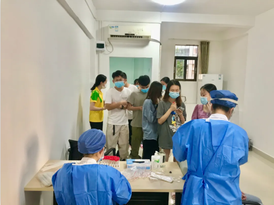 醫(yī)護(hù)人員在宿舍為管培生做核酸檢測(cè)
